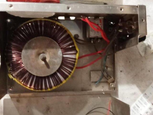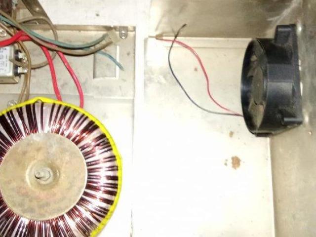 Недовършен проект на база тороидален трансформатор с мощност 250VA - Ф120х50. Намотката оригинално е за 24V. Монтиран е във функционално удобна метална кутия от стар компютър с ключ, мрежов филтър и вентилатор.